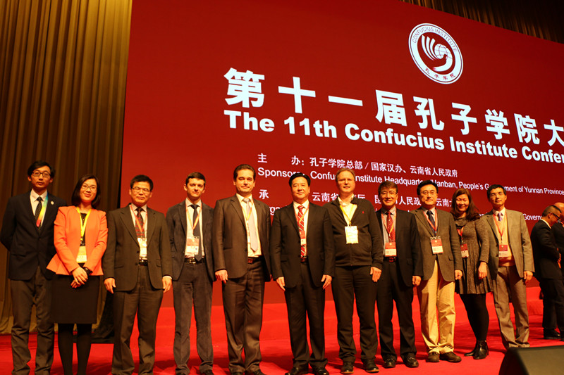 12月10-11日,第十一届全球孔子学院大会在云南昆明隆重召开,本届大会主题是“创新、合作、包容、共享”,来自140多个国家和地区的大学校长、孔子学院代表、相关国家驻华使节和中方承办高校代表等共计2200余人出席了大会。开幕式由教育部部长、孔子学院总部理事会副主席陈宝生主持,中共中央政治局委员、国务院副总理、孔子学院总部理事会主席刘延东出席并做主旨演讲。刘延东强调,当今时代,构建以合作共赢为核心的新型国际关系,携手打造你中有我、我中有你的人类命运共同体,是世界各国人民共同心声。孔子学院要深化教师、教材、教学法改革创新,拓展办学功能,提高办学质量,实现内涵发展。要发挥中外合作高校的积极性,完善理事会机制,促进合作办学深度融合。要推动孔子学院本土化发展,坚持开门办学,推动文明互学互鉴。要主动服务于“一带一路”建设战略,支持区域、国别之间孔子学院合作,努力惠及各国人民,为促进多元多彩文明发展作出新贡献。
