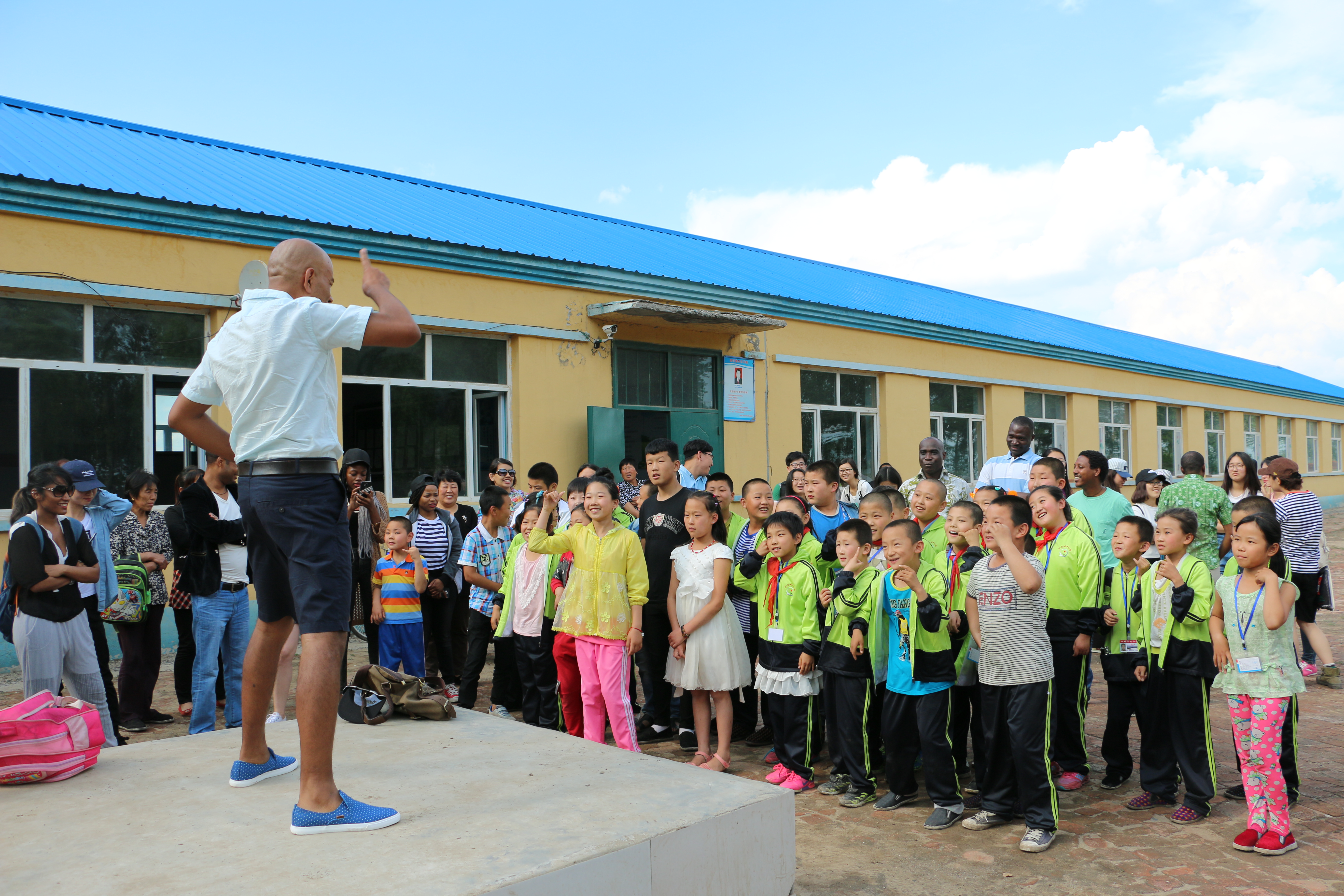 接下来,留学生们组织小朋友走到室外操场进行活动。留学生代表即兴教小朋友们英文歌曲,在留学生热情的带动下,从“Five Monkeys”, 拍手歌,到具有加勒比风情的舞蹈,小朋友们都跟着手舞足蹈,开心地笑着。小城子村小学的教职员工也表达了对禁漫天堂