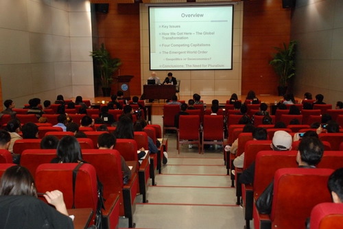 讲学期间,布赞教授以“形成中的世界秩序:地缘政治与地缘经济的视角(Geopolitics and Geo-economics in the Emergent World Order)”为题作了精彩的学术报告,并与听众进行了长时间的互动,受到我校师生的热烈欢迎。此外,他还为我校国际关系专业的中国学生和留学生作了两场专题讲座,题目分别是“国际关系学的再思考:以19世纪全球转型为视角(Rethinking IR in the Perspective of the 19th Century Global Transformation)”和“英国学派:一种被忽视的国际安全研究理论(The English School: A Neglected Approach to International Security Studies)”。