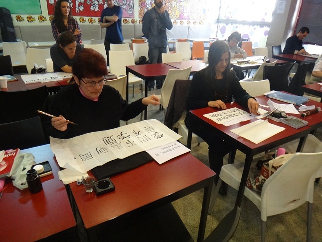 9 月27日是汉字书法比赛,共有七名孔子学院学员参赛。这次比赛分两个环节,第一个环节为《论语》名句书写;第二个环节为选手自选内容书写。选手们分别采用楷书、隶书等形式进行了书写。