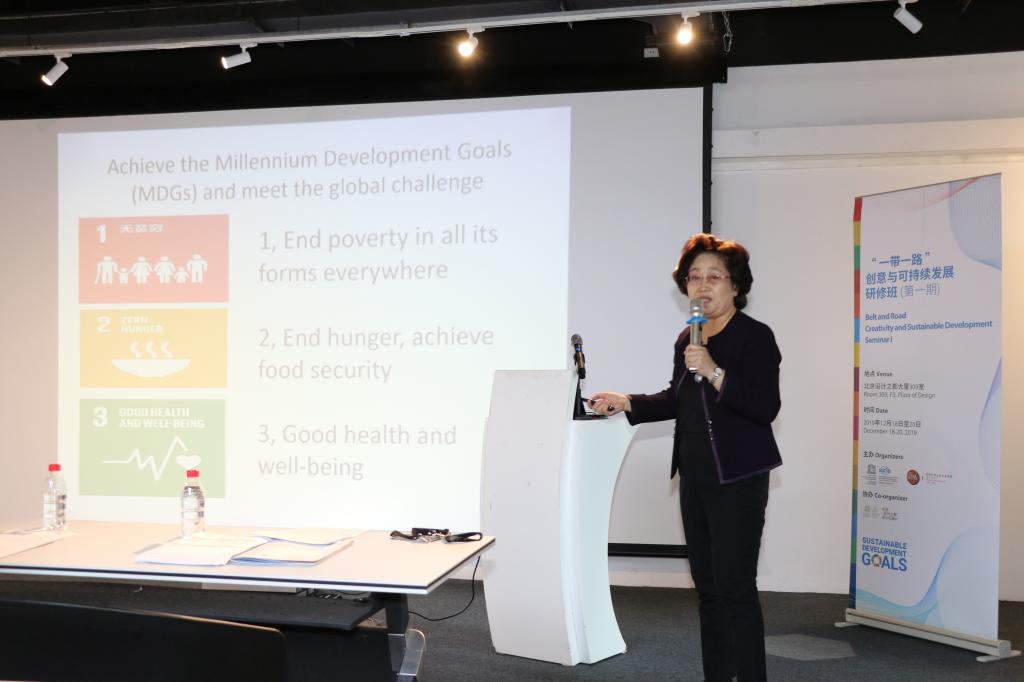 签署仪式结束后,“一带一路”创意与可持续发展研修班正式开班。杨宝珍女士为留学生们进行题为“中国落实联合国2030年可持续发展议程及成果”的讲座。在接下来的几天时间里,研修班将邀请北京科技大学、北京服装学院的知名教授和知名公益项目负责人等为留学生们进行专题培训,并组织学生到中关村软件园和白塔寺就高科技产业园区的筹建和老城区改建等方案进行实地考察。