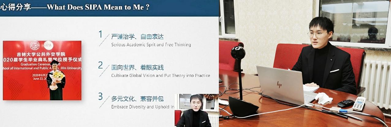 的收获与体会,并分享了他在学院的支持下赴美国参加全美模拟联合国、赴俄罗斯参加孔子学院调研项目等的对外交流经历,指出学院搭建的国际化平台为其跨文化交流能力打下了良好基础。