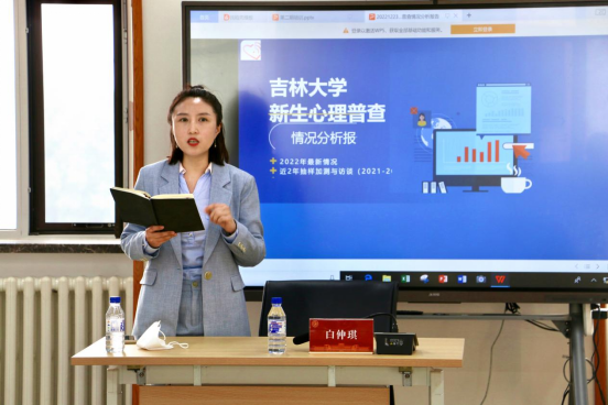白仲琪老师以近年大学生心理发展变化趋势为主题,围绕学生心理异常识别与干预、学生心理健康情况特点等内容进行了深入浅出、生动详实的分享。同时,基于普查数据,白仲琪老师对我校学生心理健康问题发生发展的总体情况进行了解读,并针对新生心理健康状况的人口学变量进行了探索性分析。
