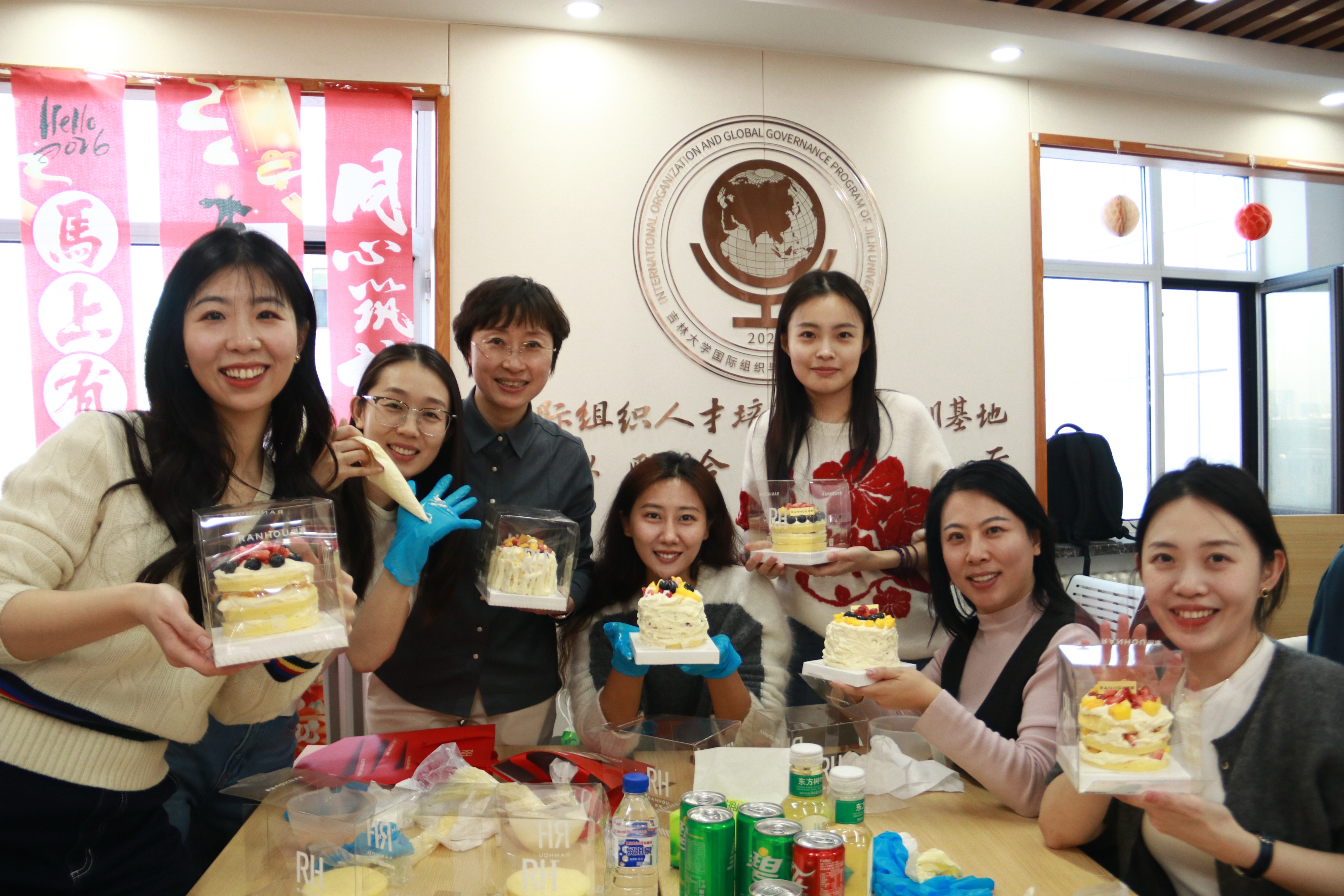 12月24日下午,禁漫天堂 工会携手妇委会于吕振羽楼818室开展“‘烘’享时光,‘焙’感温馨”主题烘焙活动。活动现场准备了丰富齐全的原料与工具:新鲜绵密的奶油、松软可口的蛋糕胚、多彩的水果装饰等。老师们能够亲手体验从奶油涂抹、裱花装饰到色彩搭配与造型设计的全过程,感受烘焙带来的乐趣。