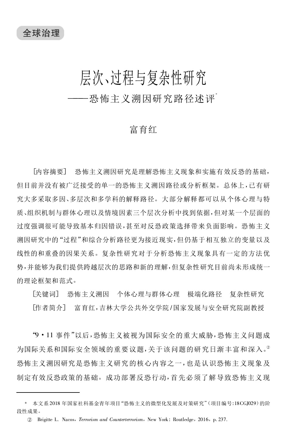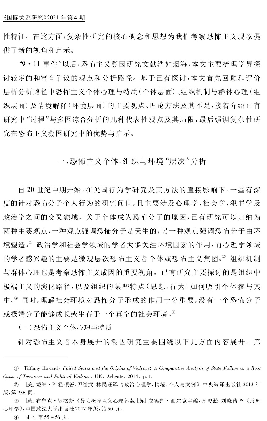 富育红:层次、过程与复杂性研究-恐怖主义溯因研究路径述评