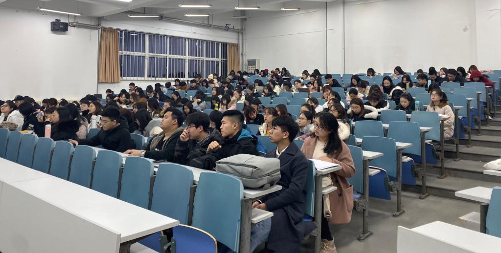 12月23日下午,宣讲团抵达大连外国语大学后,立刻开展招生宣讲工作,招生宣讲工作受到了来自大连外国语大学近三百名同学们的热烈欢迎。