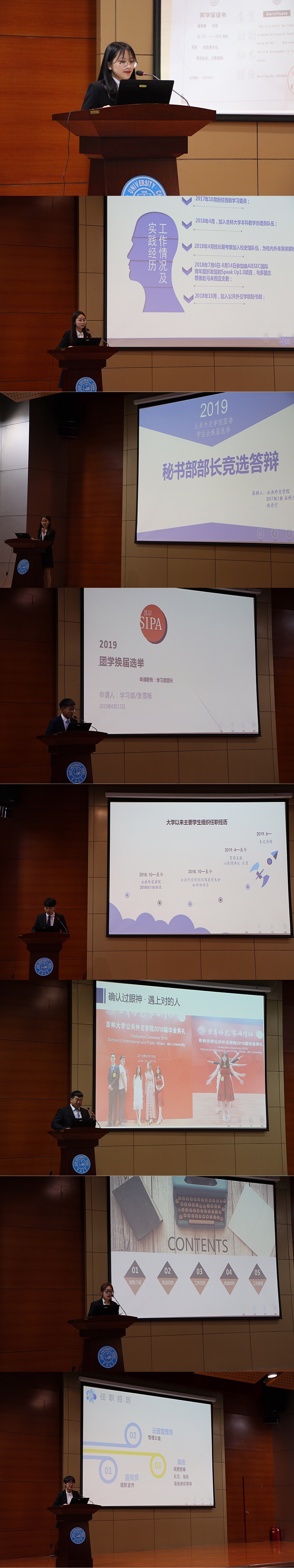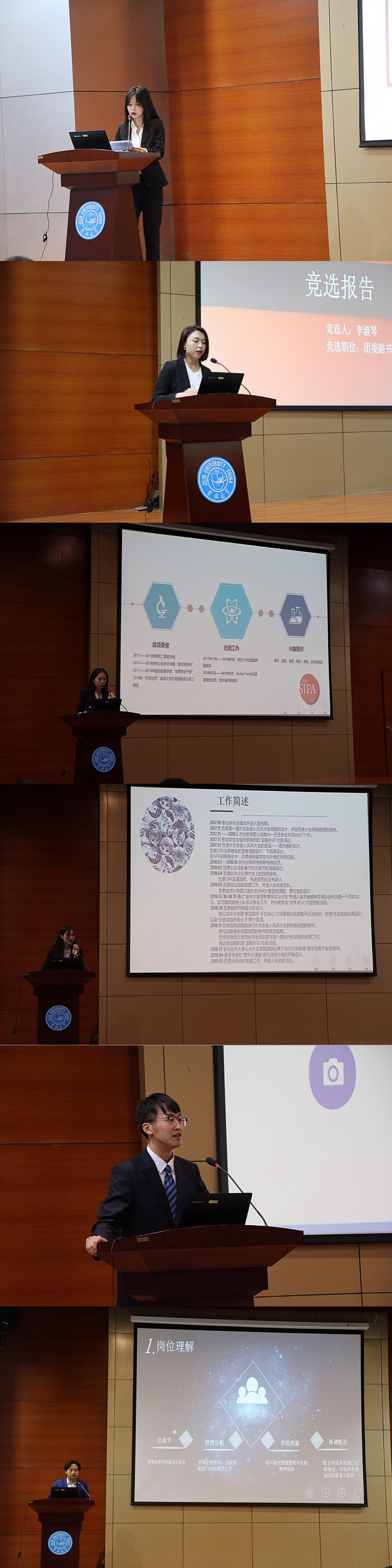 随后14名参选同学依次上场发表竞选演讲,通过个人任职经历、所获奖项荣誉、工作展望等内容,展现了个人的能力,彰显了当代大学生勇于进取的品质,字里行间流露出对团委学生会工作的热爱,热情饱满信心十足的现场展示也赢得了老师与同学的肯定。