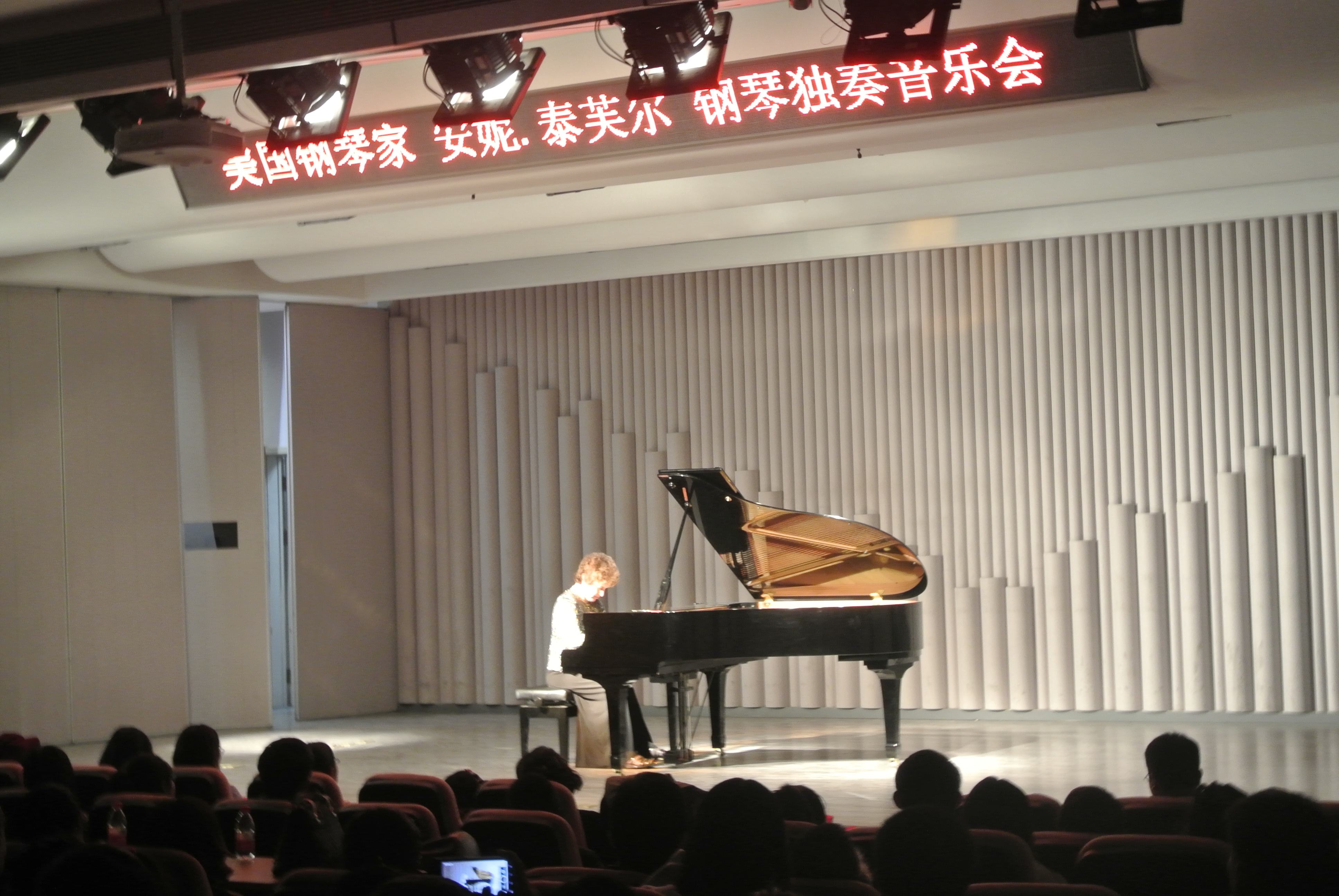 ,并在艺术学院音乐厅举办个人钢琴演奏会。当晚,安妮·泰芙尔演奏了肖邦、舒伯特等名家的经典曲目,她还特意演奏了在中国脍炙人口的曲目《浏阳河》,以表达她对中国以及中国音乐的喜爱。在场观众无不为其精湛的技艺所折服。最终,音乐会在全场观众热烈的掌声中圆满结束。