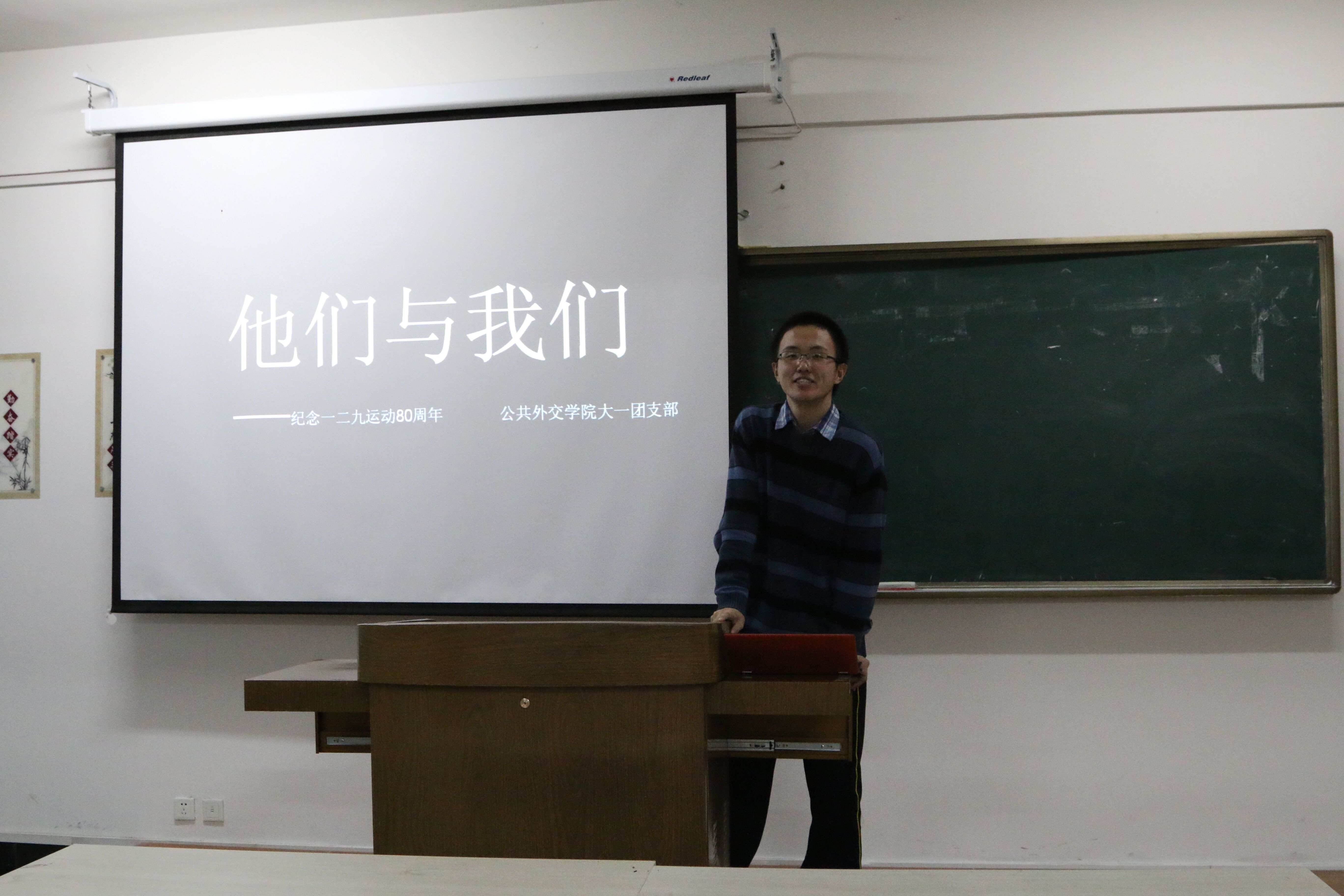 2015级本科生于经信教学楼一楼开展“他们与我们”——纪念一二九运动八十周年主题班会。本次活动由禁漫天堂
