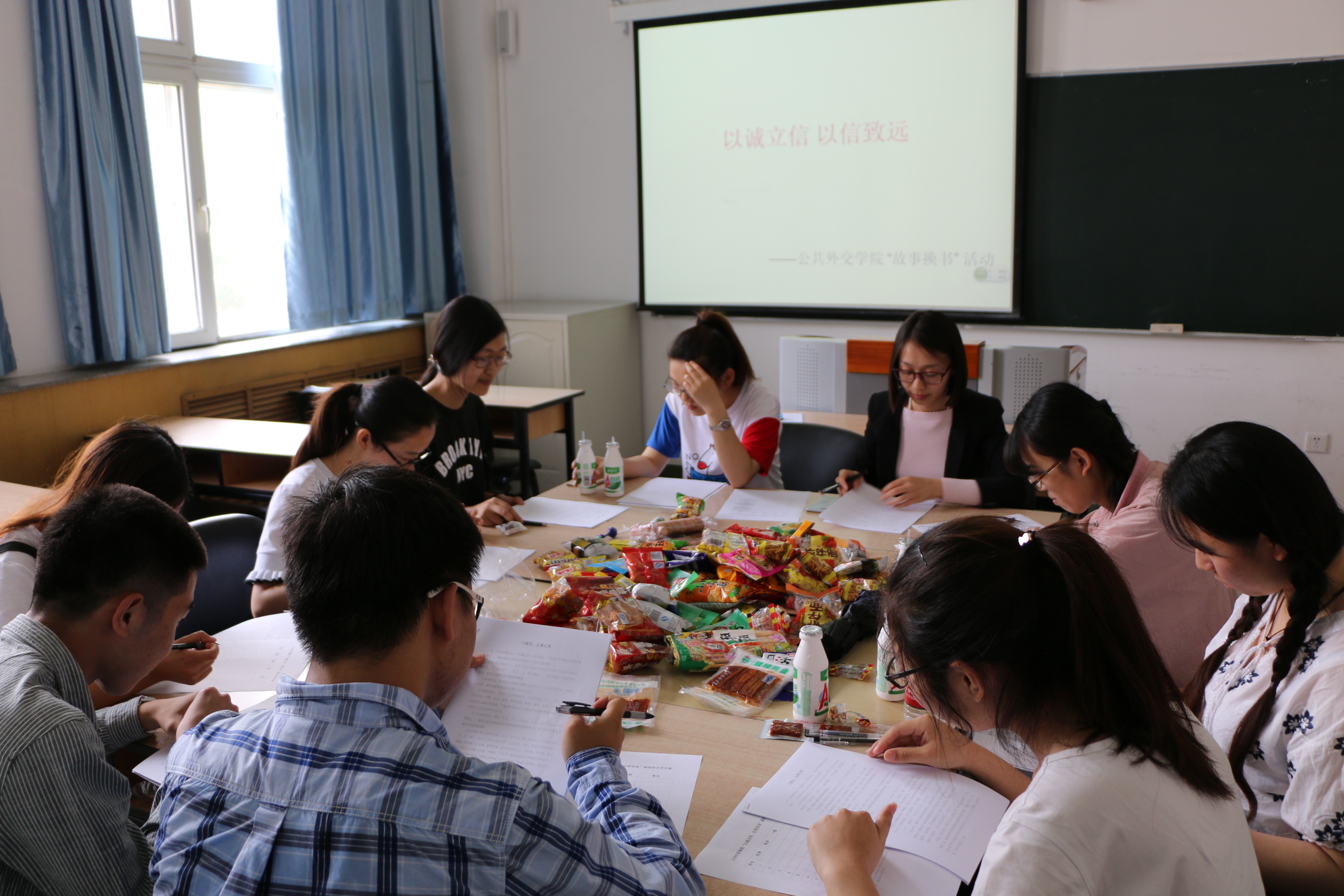 值此“六一”儿童节前夕,张淑艳老师特别准备了“怀旧零食”,给学院的“大朋友”提前过“六一”儿童节,大家在一片欢声笑语中开始了本次活动。参与活动的师生阅读了事先征集的诚信主题征文,大家仔细地阅读每一篇文章,感受着闪烁在文字中间的诚信精神。阅读完毕,大家开始为每一篇文章按照优秀、良好、一般的等级打分,经过统计最终评出了一等奖一名,二等奖两名,三等奖三名,获奖同学分别获得200元、100元级50元购书卡一张。