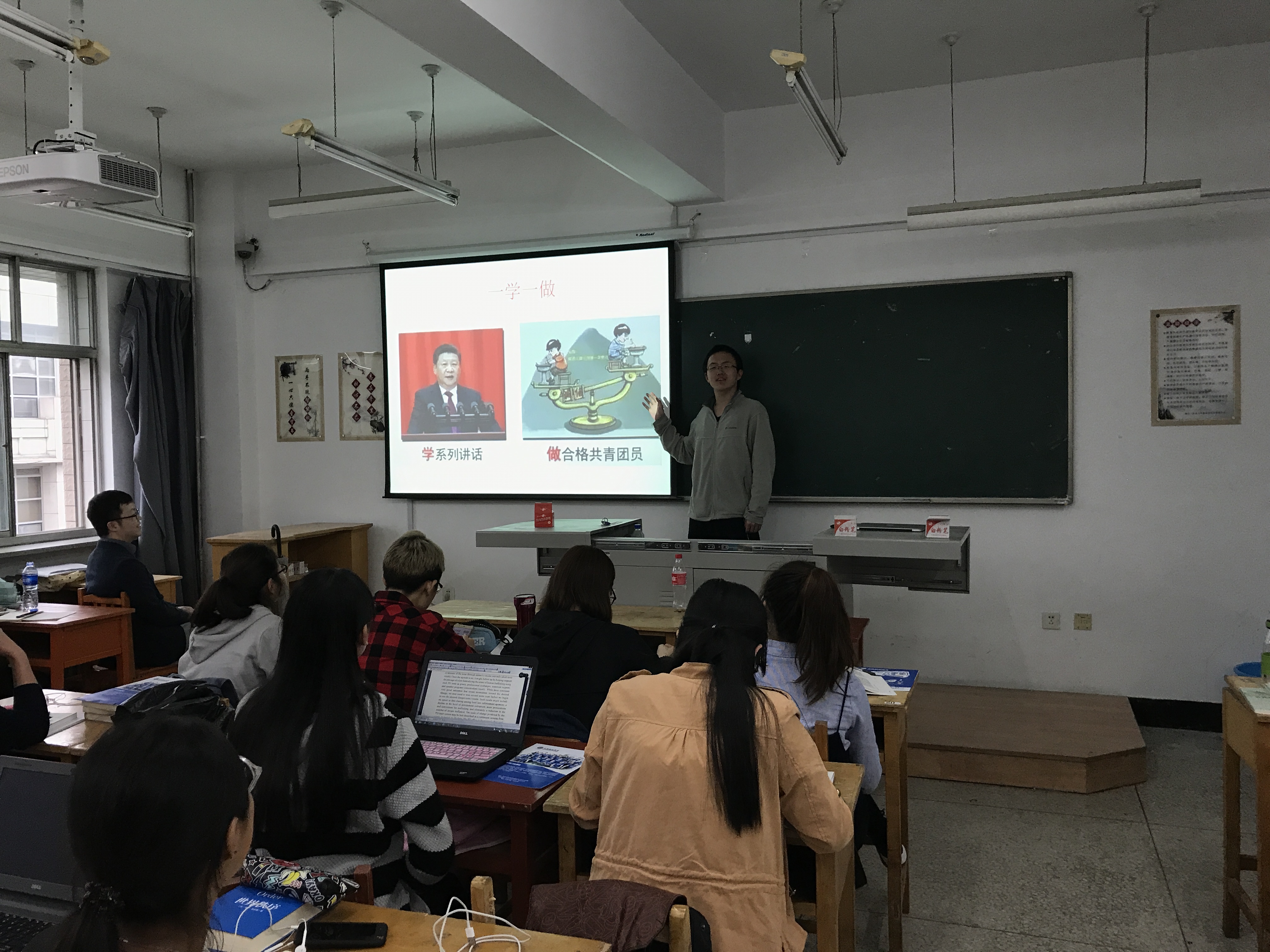 15级团支部于逸夫教学楼315教室成功召开“学习总书记讲话,做合格共青团员”主题班会。