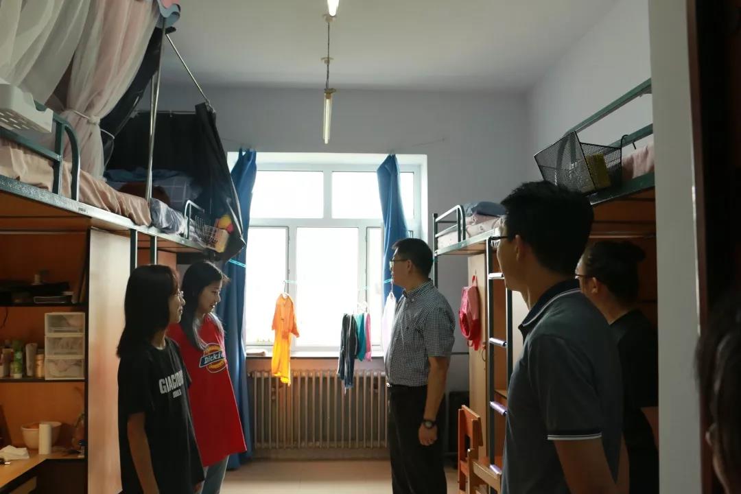 党总支书记杨民和2019级新生辅导员王力老师来到南苑九公寓和文苑一公寓看望同学。