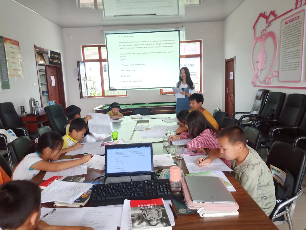 第二天支教队员开始了教学活动。由于孩子们英语普遍比较薄弱,成员们根据学生的实际知识基础和接受能力,从音标、阅读、语法等几个方面为学生们突击补习。课余时间,成员们还会为学生答疑解解惑,辅导暑假作业。
