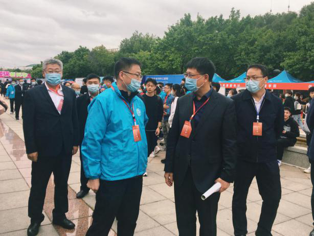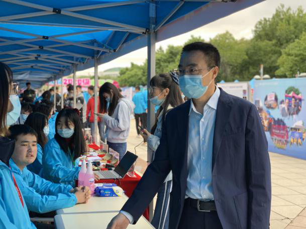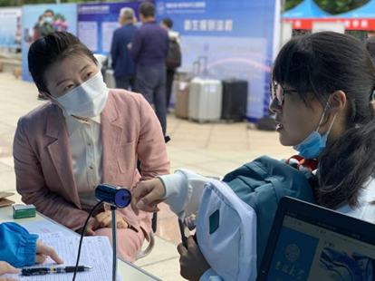 党总支书记杨民老师、2020级新生辅导员张淑艳老师、高梦鸽老师全程参与迎新工作。