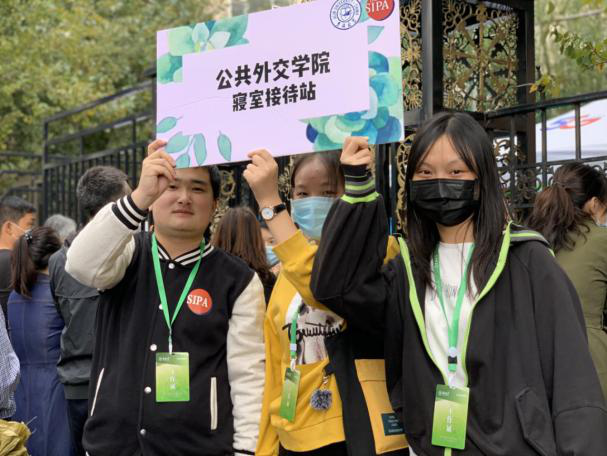 志愿者为新生详细讲解了有关报到入学的诸多事宜,并提前在新生资料袋中准备了SIPA专属明信片和书签。在各大乘车点和寝室接待站,志愿者们耐心引导新生前往寝室并帮助搬运行李。此外,疫情期间,学校还向新生发放了含有多种防疫物资的健康包,保障同学们的健康状况。