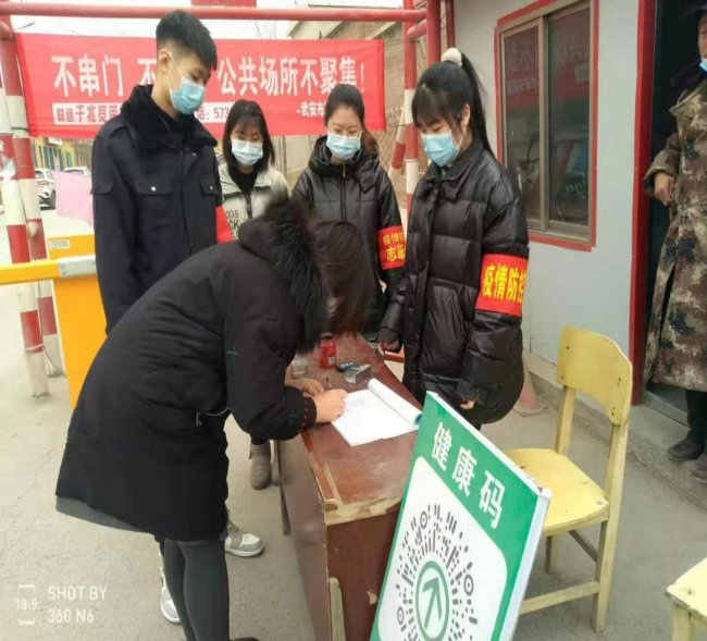2018级本科生白璐同学在假期期间主动成为一名志愿者,在河北省武安市协助开展疫情防控工作。