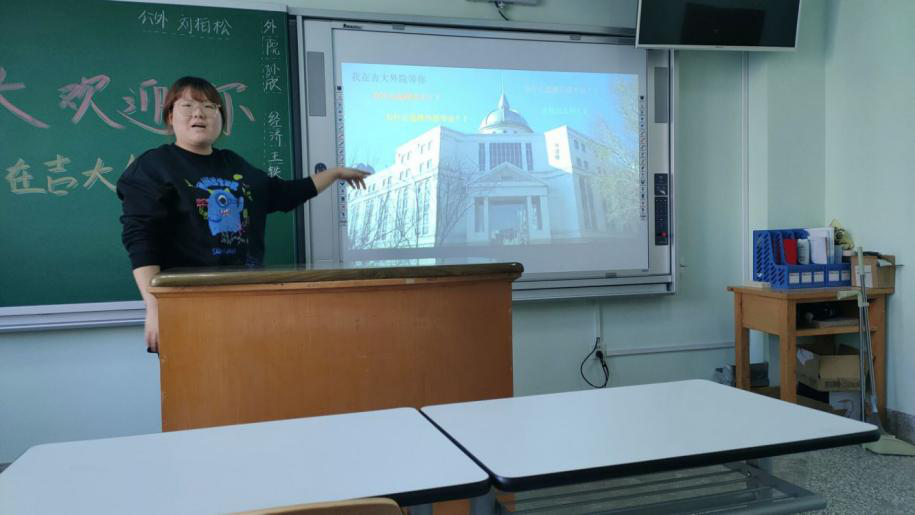 参加辽宁省大连市第二十三中学的宣讲同学出于对疫情防控的考虑,选取了一种新的招生宣讲方式,即通过制作视频短片的形式描绘吉大的师资力量、学院分布、学习生活和相关的学生组织概况等。