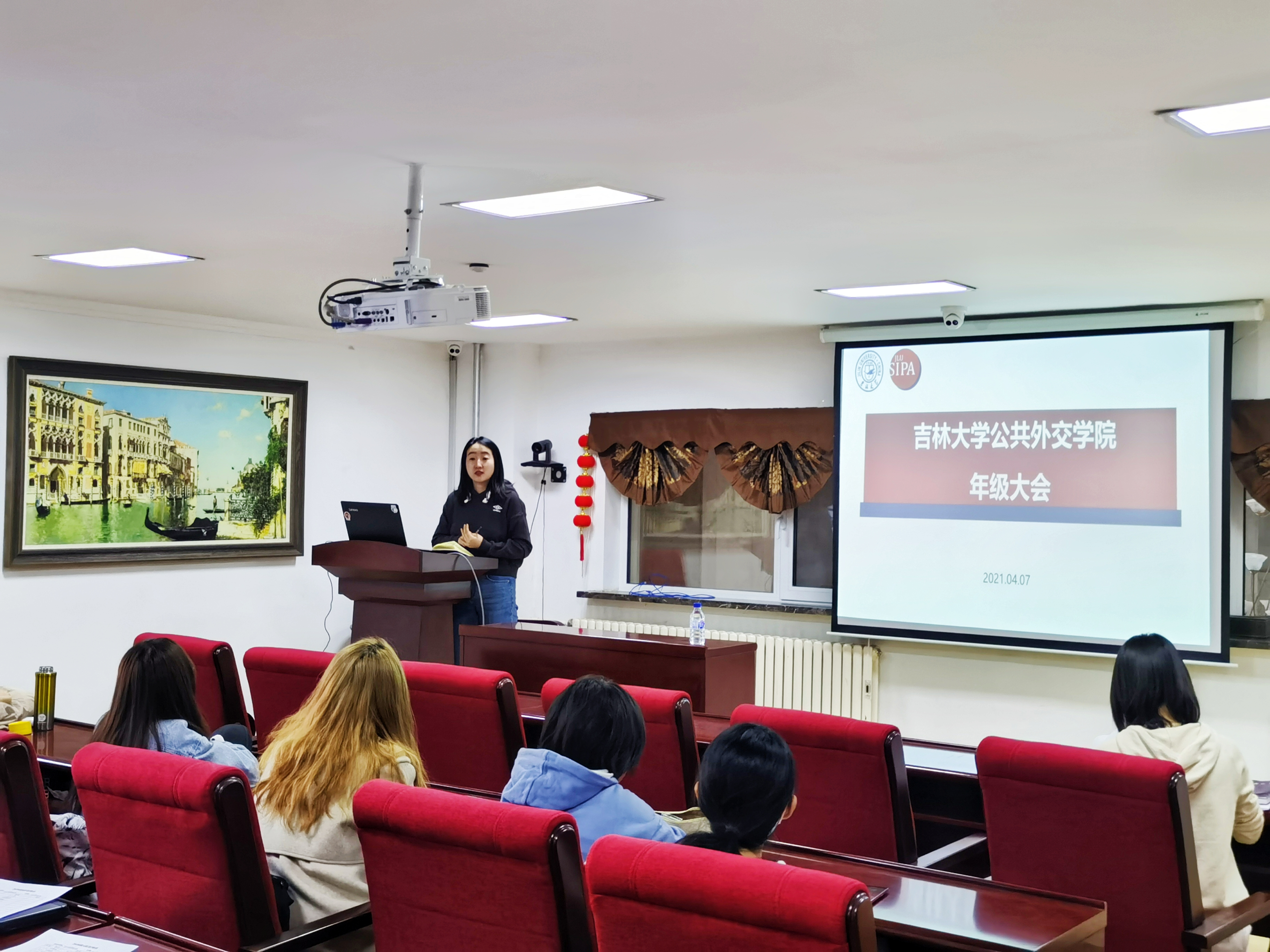 2020级本科生召开新学期年级大会。张淑艳、高梦鸽两位老师与全体2020级本科生共同参加会议。