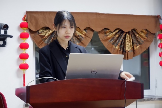 软件学院2019级本科生孟娇在进行PPT培训