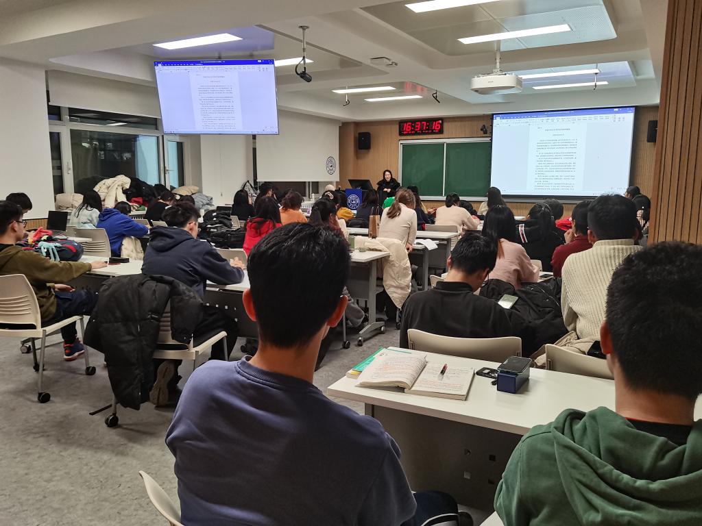 在逸夫楼507教室召开期末年级大会。班主任乔蕊老师和刘雅姝老师、辅导员张淑艳老师以及2021级全体本科生参加活动。