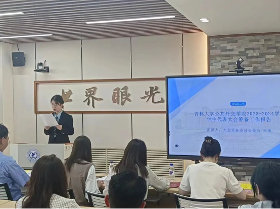 在吕振羽楼818会议室召开2023-2024学年学生代表大会,集体表决通过第八届团委、学生会工作报告,并顺利完成第九届团委、学生会主要学生干部换届选举工作。全院34名学生代表参加了会议,研究生与留学生工作办公室主任王庆老师,学生工作办公室主任、纪委委员张淑艳老师,团委负责人单葆龙老师,研究生秘书于晴老师出席会议。本次大会由学院团委副书记王俊翔同学主持。