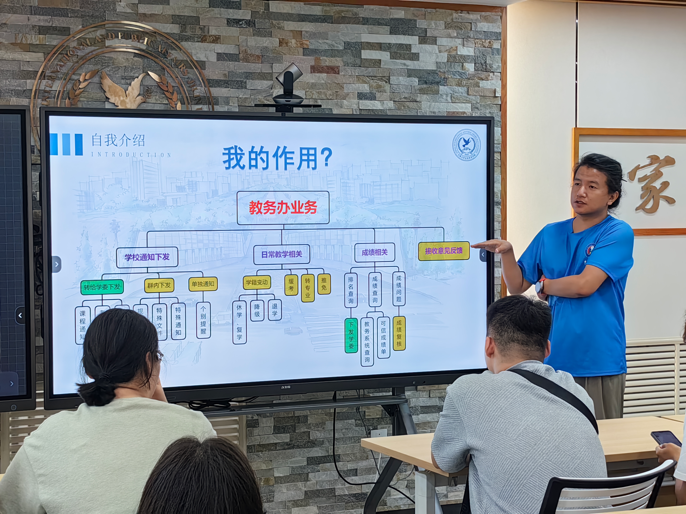 首先,孟老师向同学们进行了自我介绍,并对教学办的基本情况和工作内容进行了详细说明,同时鼓励同学们及时提出问题,与老师保持交流沟通,并解答了同学们在成绩排名、转专业、推免等方面的疑问。