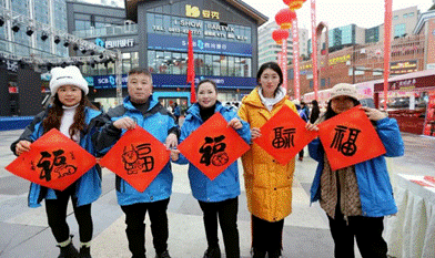 “春风送暖入蜀冬”社会实践小队来到了自贡市梵华1939商业中心协助开展迎春游园活动。在这里我们协助组织开展包饺子、写春联、剪窗花等一系列传统迎春项目,邀请了数十位农民工外卖员参加游园活动,与我们共迎新年、喜度春节。活动吸引了许多市民,我们积极引导市民与农民工外卖员沟通,增进互相理解与认同,现场气氛融洽,共计覆盖2000余人次。