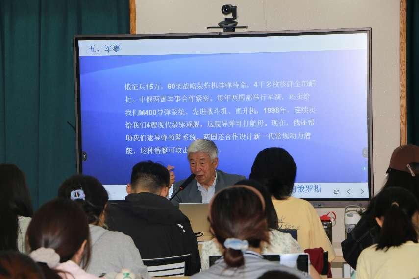 发表以《大国关系----我眼中的俄罗斯》为题的讲座。讲座由学院党委副书记兼副院长王力主持,党支部书记张淑艳老师、2023级本科生、党员代表及2024上半年入党积极分子参加讲座。