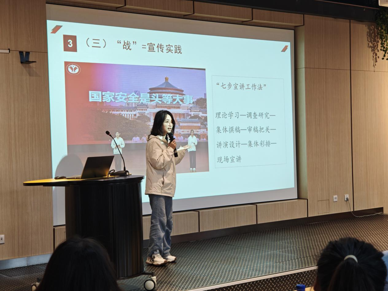 来自西南政法大学的陈炫旭同学聚焦本校总体国家安全观宣讲团实践,以“牢记嘱托,挺膺担当,在国家安全宣讲中贡献青春力量”主题进行发言,用生动的案例、真挚的情感和务实的行动,诠释了“青年何为”的时代命题。