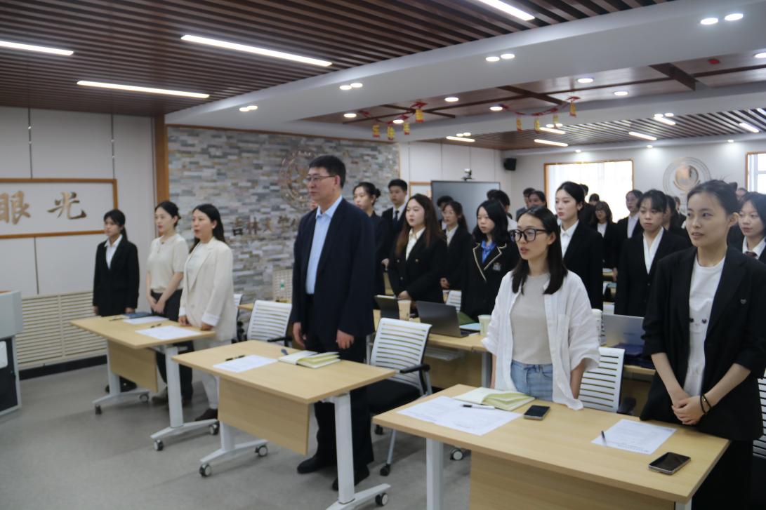 大会在庄严的国歌声中拉开序幕。首先,刘昌松老师和李季航老师分别为第十届团委学生会骨干成员颁发聘书。