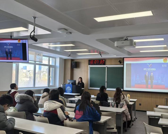 2025级2班团支部以“亚太聚共识,青春践外交”为主题开展团日活动。活动由团支部李梦扬主持,聚焦2025年APEC庆州峰会成果,将外交理论与国际热点紧密结合,明确青年需从专业赋能、实践参与、理念传递三方面践行使命。最后的问答环节深化了同学们对于多边外交和中国担当的理解,明确了青年在外交领域的责任与使命。