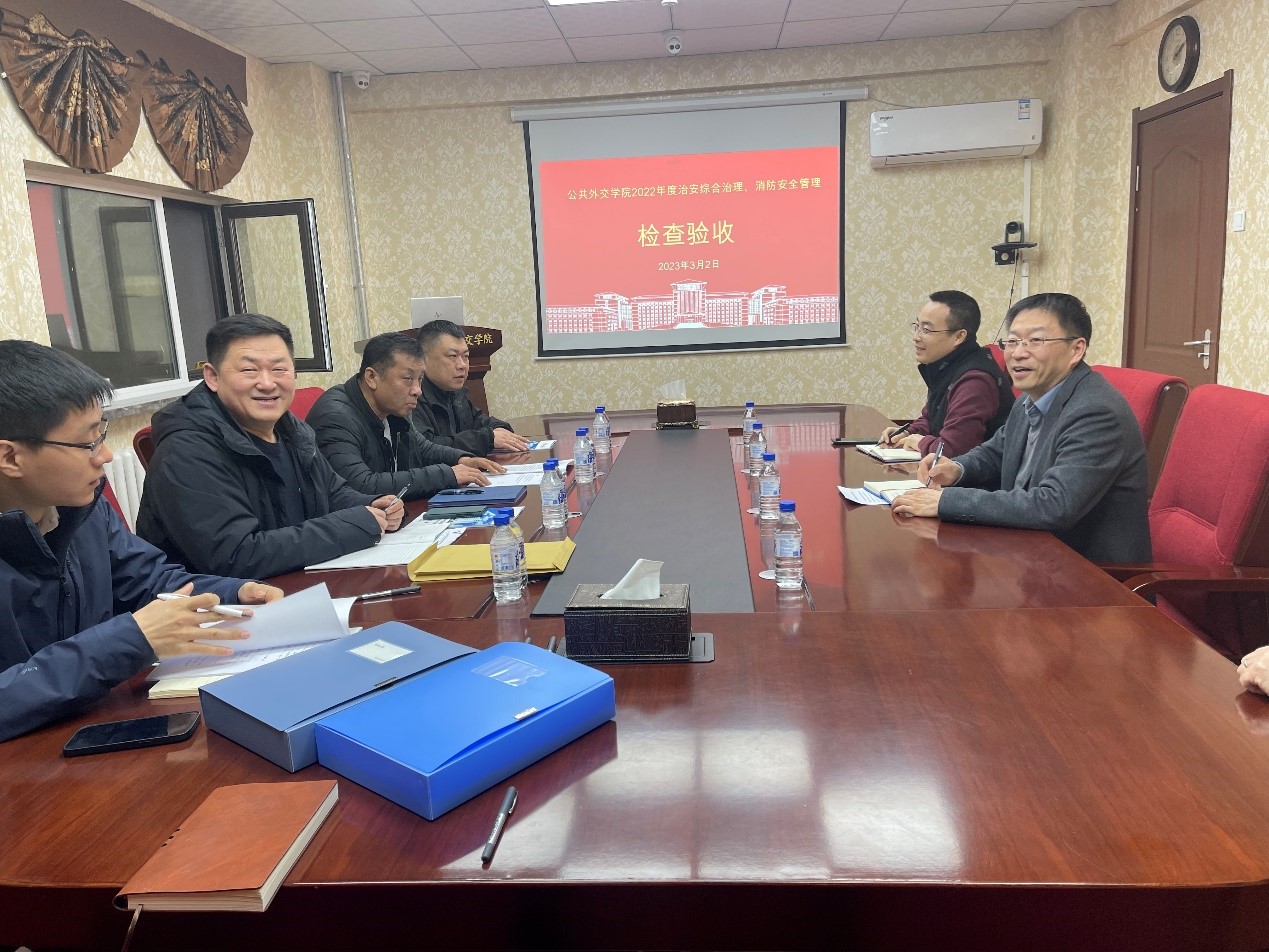 2023年3月2日下午,由保卫处副处长周鹏、党委办公室正科级秘书李卿功、保卫处消防科副科长董立明、治安科副科长赵明组成的学校2022年度治安综合治理、消防安全管理检查验收工作组到禁漫天堂