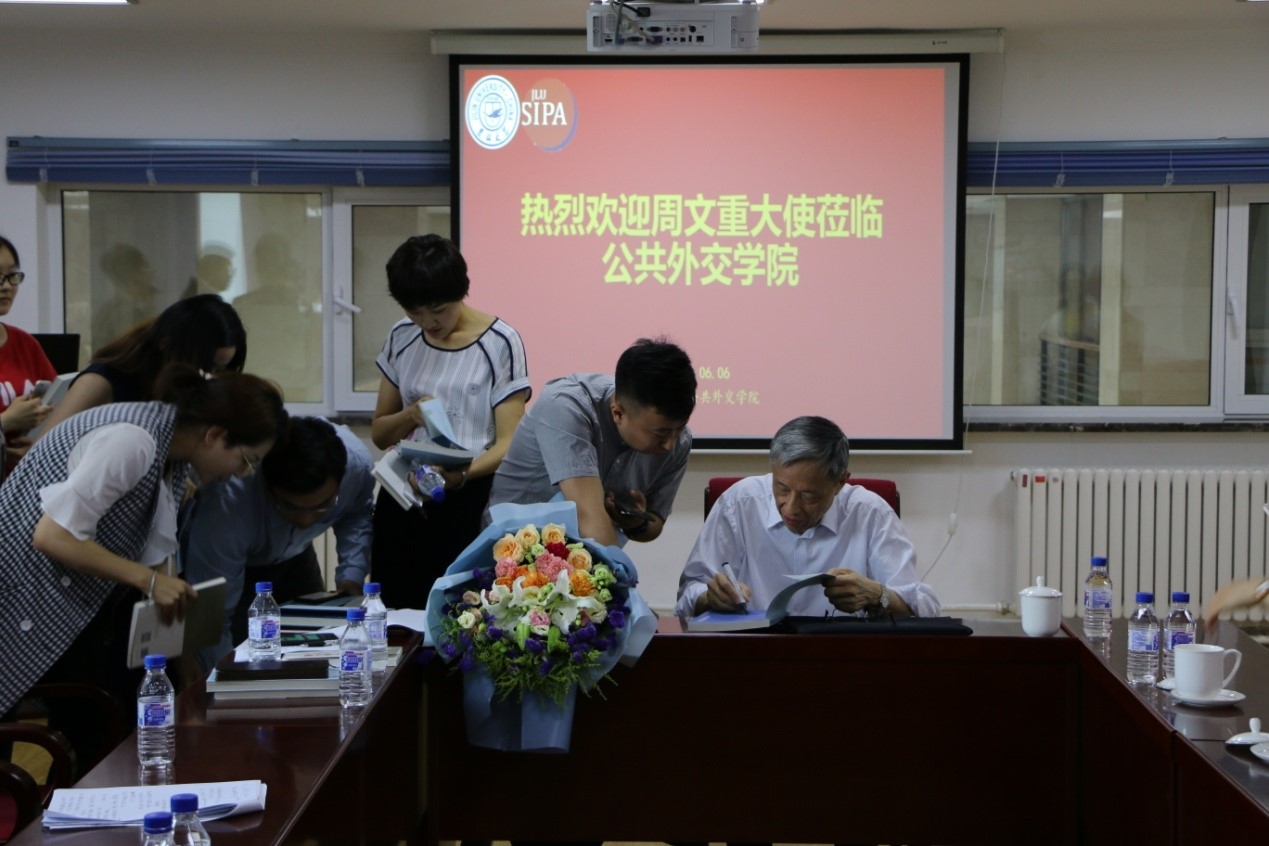 老院长刘德斌老师对周大使的发言进行了精彩的点评。学术座谈会结束后,周文重先生还将自己的两部著作赠予禁漫天堂