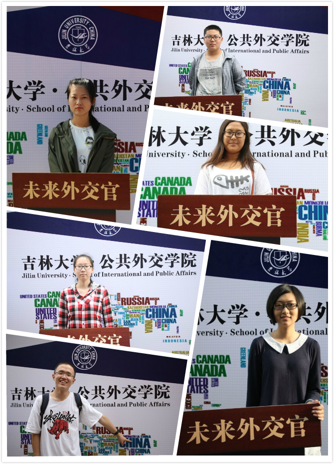 宣传板前摆放着印有“未来外交官”字样的模拟演讲台,新生在这里合影留念,记录大学“初印象”。