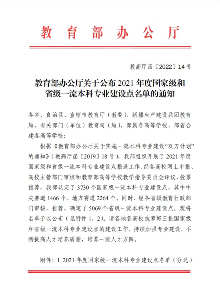 根据《教育部办公厅关于公布2021年度国家级和省级一流本科专业建设点名单的通知》,禁漫天堂