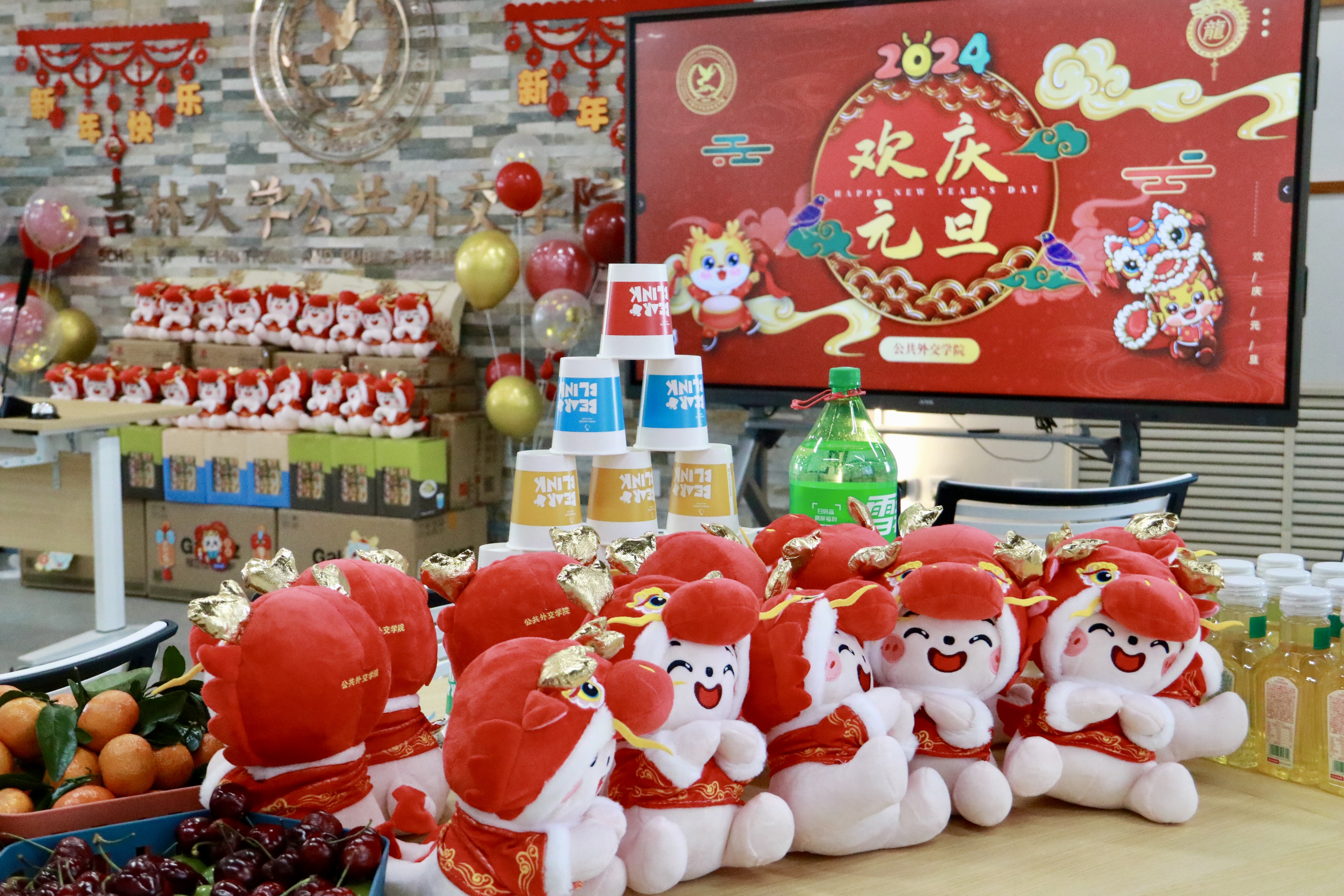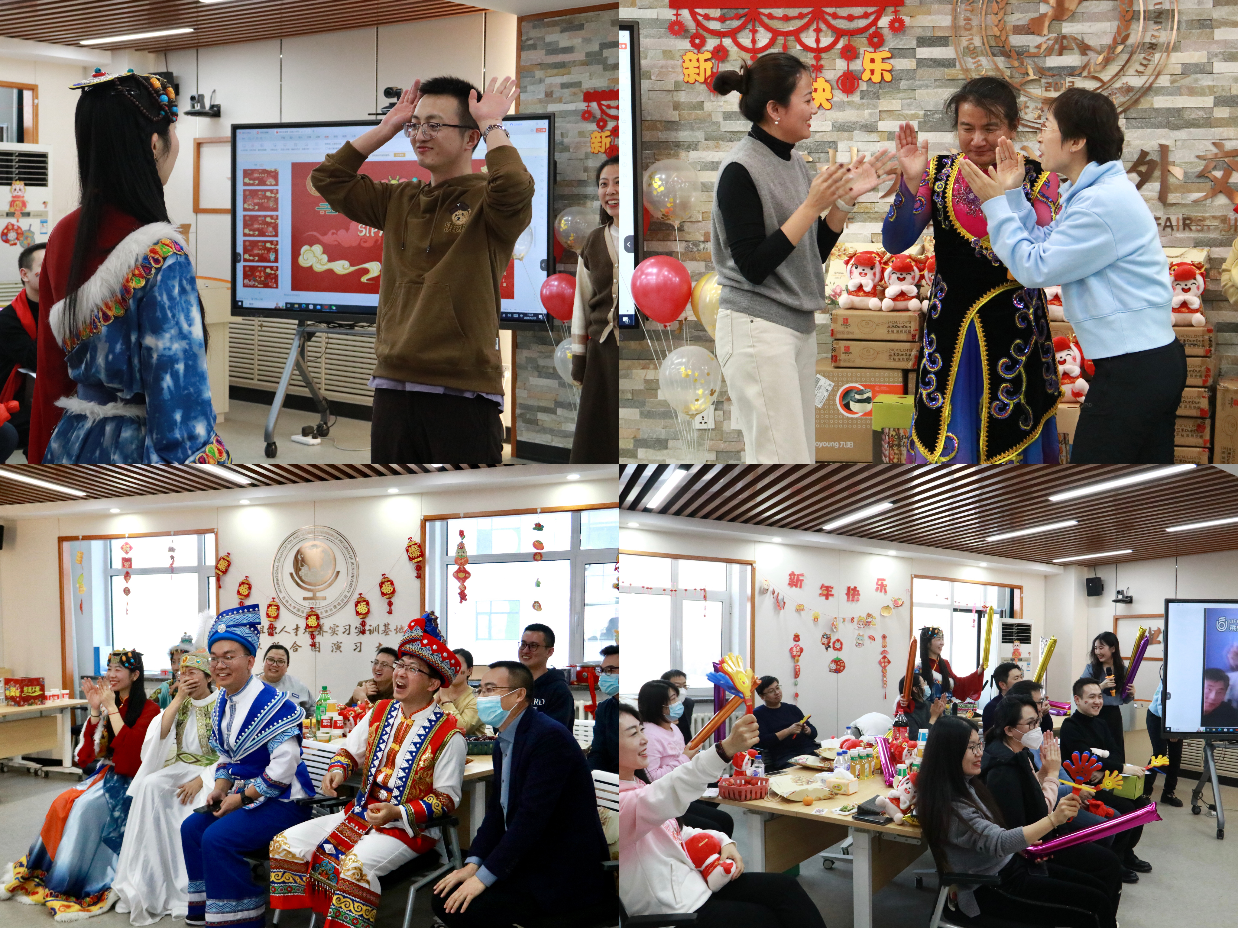在中心校区吕振羽楼818室举办“璀璨外交 温暖启航”2024年教职工新年联欢会。活动现场气氛热烈、暖意融融。学院领导班子及全体教职工齐聚一堂,喜迎新年。