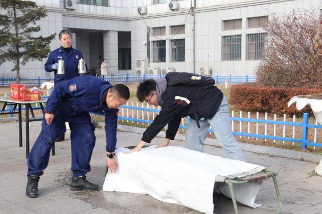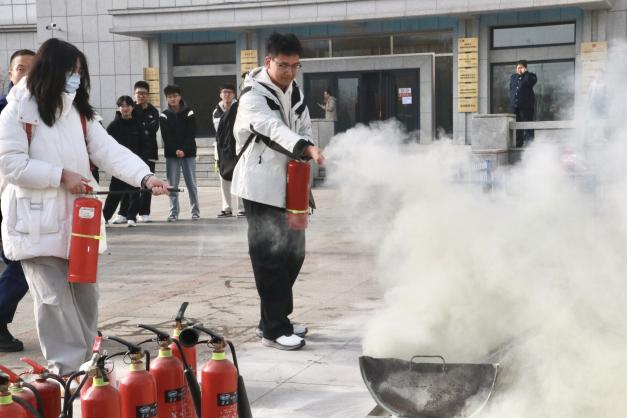 师生开展了室外现场灭火演练,现场检验学习成果。