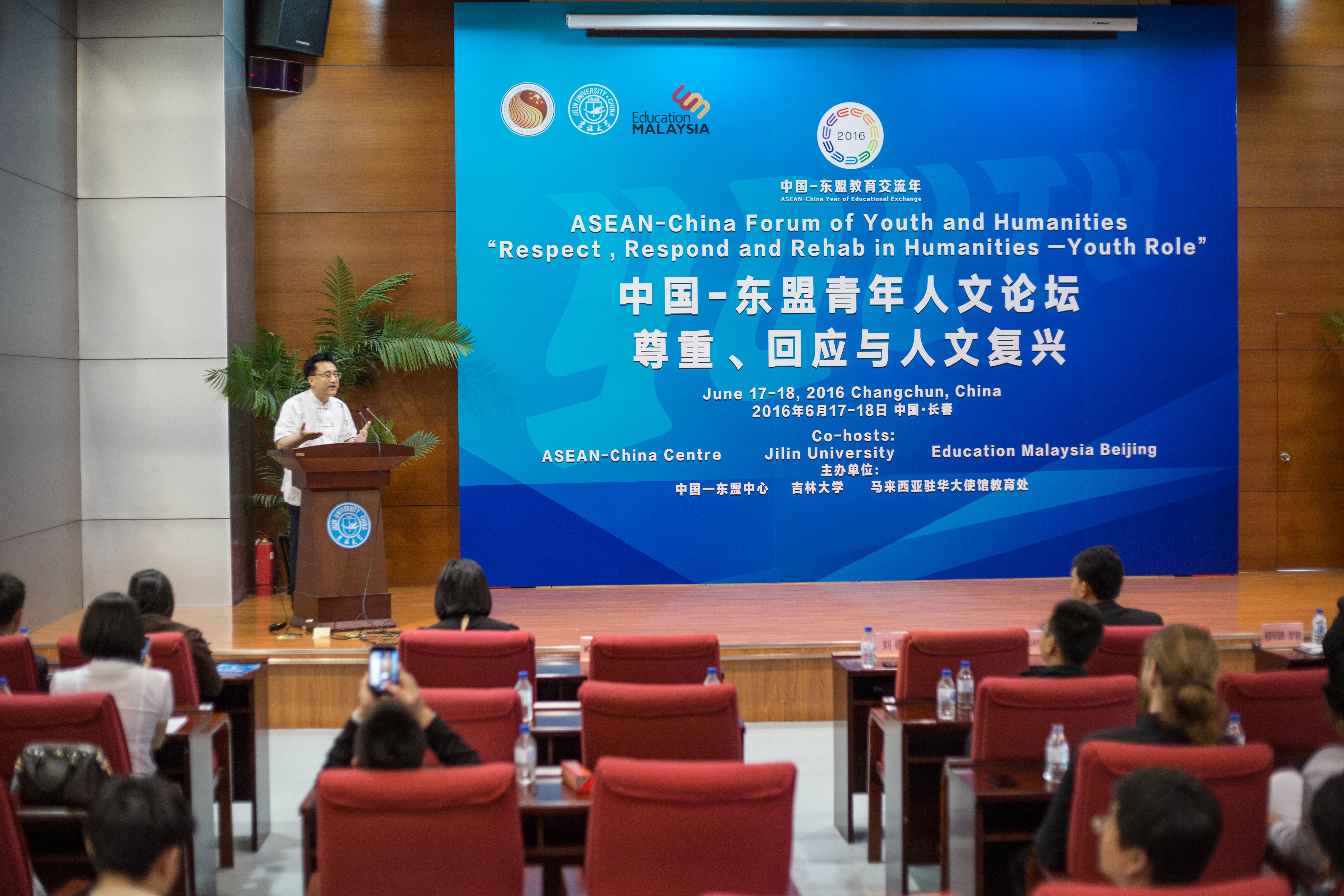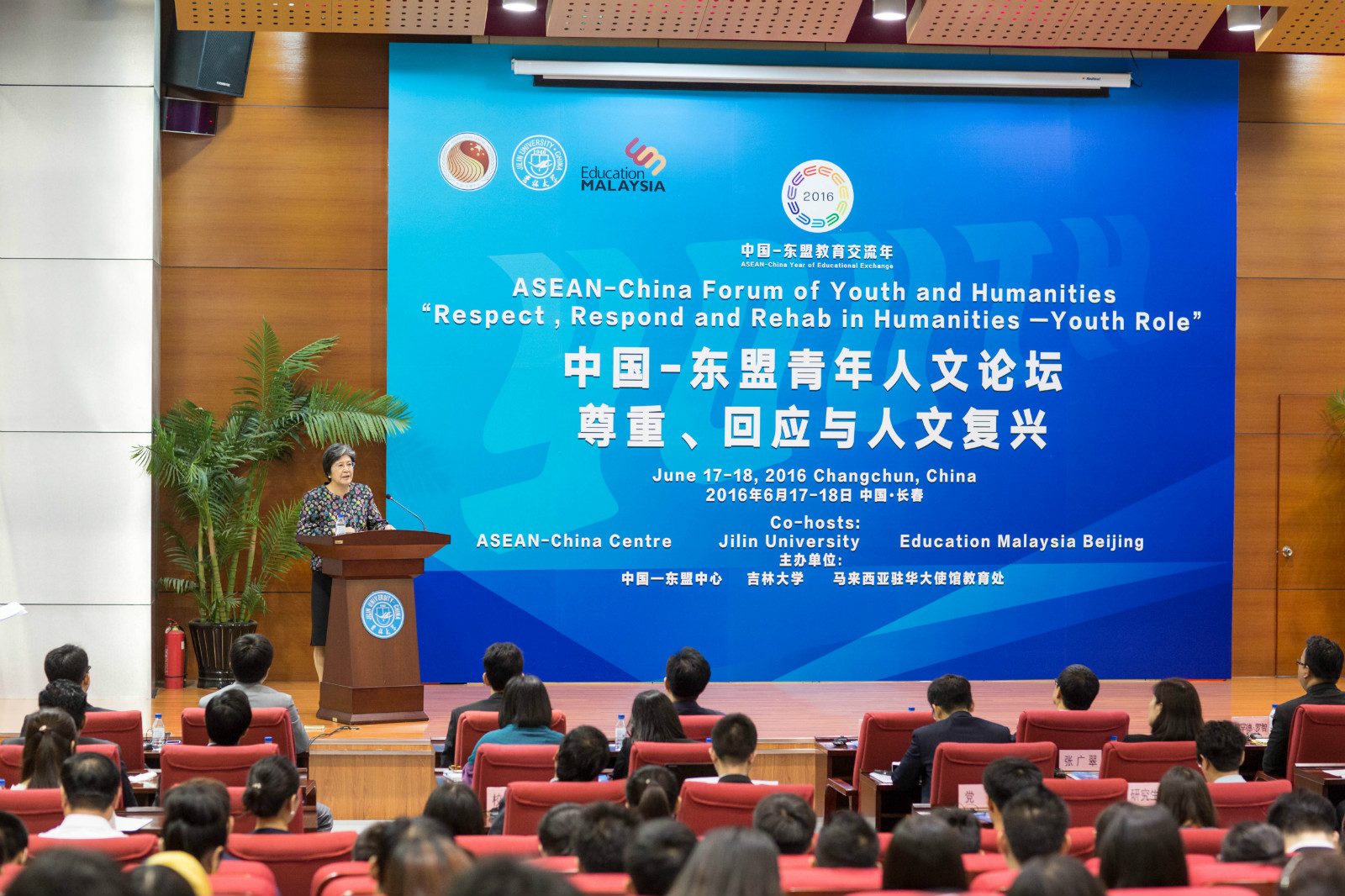 、马来西亚驻华大使馆教育处共同主办的“中国-东盟青年人文论坛”在我校举行,中国-东盟中心秘书长杨秀萍大使、东盟各国驻华使馆教育官员、长春各高校东盟留学生以及我校师生共170余人出席。此次论坛是2016年中国—东盟教育交流年系列活动之一,也是中国—东盟中心首次在东北地区举办的大型人文交流活动。