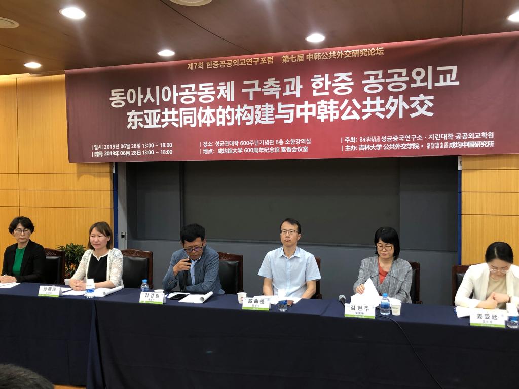 、延边大学、韩国成均馆大学、西江大学、济州和平研究院、统一研究院和世宗大学等高等学校的数十位学者参与。成均馆大学成均中国研究所所长李熙玉教授和刘德斌教授先后在开幕式致辞并发表主题演讲。李熙玉教授的主题演讲题目是“东北亚共同体构建与韩中关系”。他在演讲中分析了美韩关系、中美关系以及科技发展等对东北亚共同体建设的影响,指出国家间要超越“修昔底德陷阱”和“金德尔伯格陷阱”,公共外交在东北亚国际关系和共同体中发挥着重要作用。刘德斌教授主题演讲的题目是“中美关系的变化与东北亚共同体的构建”。他在演讲中分析了近年来中美关系发生“实质性”变化的原因及其给东北亚局势带来的复杂影响,特别是给韩国外交和东北亚共同体建设带来的新的挑战,指出韩国利益的最大化在于如何在中美之间发挥桥梁和纽带作用,并认为美国内政外交的“蜕变”为中韩合作和东北亚共同体建设中增加了新的现实意义。