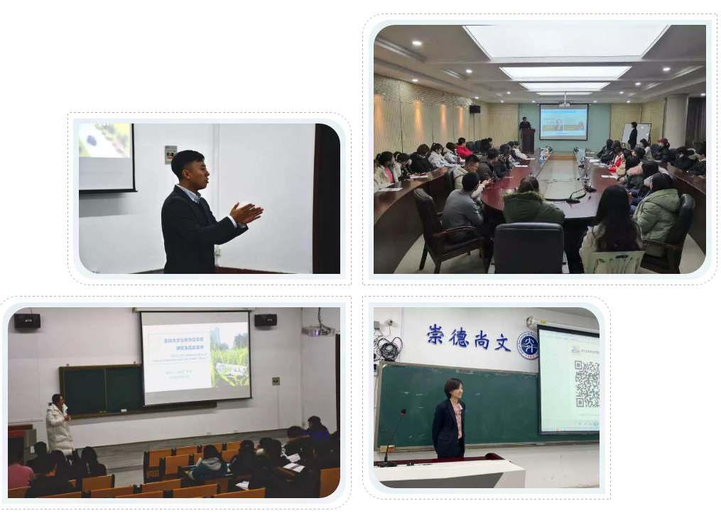的求学工作经历,对同学们关心的研究生课程设置、培养方向、就业去向等问题做出了详尽的解答。本次活动在轻松活跃的气氛中结束。