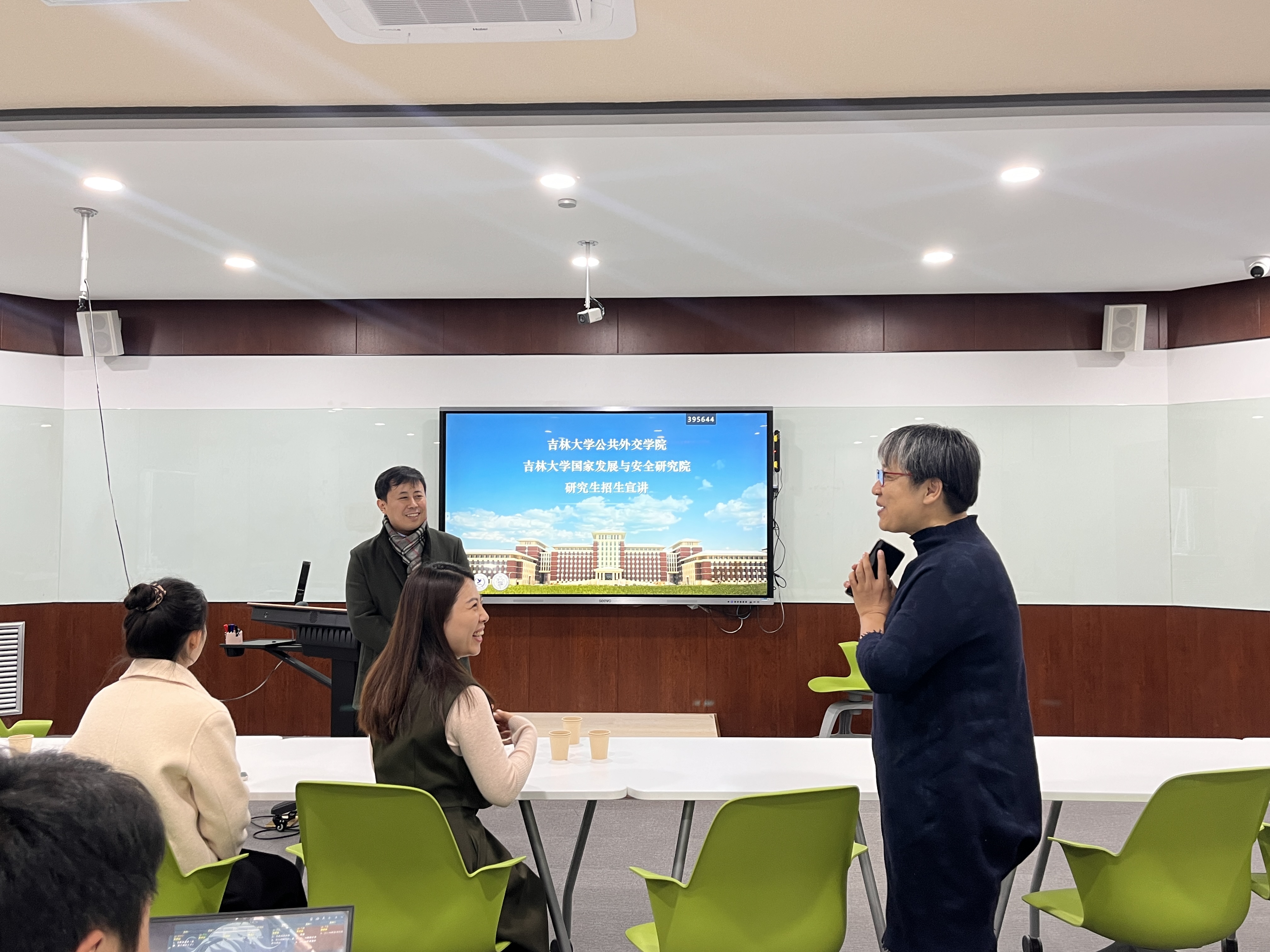 宣讲之余,东北师范大学政法学院国际政治系系主任王媛老师与邹晓龙老师就两学院长期以来的友好互动表达了充分肯定,并对未来继续加强两学院之间的联系交流进行了展望。
