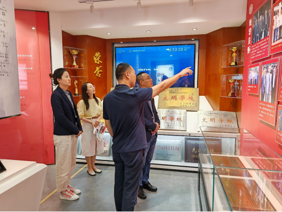 在长乐一中德育处副主任高群带领下,团组参观了校史馆、文化长廊、文化馆,了解了学校激荡百年的发展史。