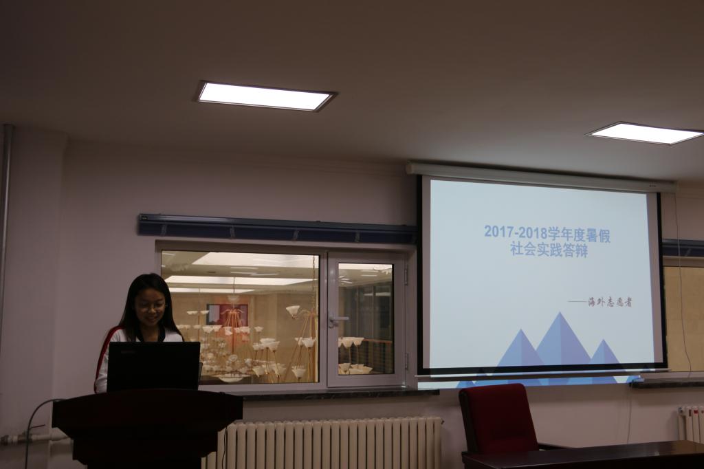 本次活动旨在为学生搭建一个交流平台,在听取不同的暑假分享的过程中互相学习、获得启发、共同进步。评审活动秉着公平公开透明的原则进行现场打分。首先是2017级石慧同学代表鼎新青年实习团队作鼎新实习计划的汇报,从个人介绍以及实习生活,团队特色和前景展望四个方面讲述了暑期政府实习的收获。在实习过程中进一步学习习近平新时代中国特色社会主义思想和全国高校思想政治工作会议精神,了解国情社情,学以致用。随后是2017级王家辉同学代表支教队作了暑期支教活动的分享,支教队以传递爱心,播撒希望,传授知识为宗旨,经过三四个月的精心筹划培训,奔赴目的地开展支教活动,足迹遍及江西赣州、吉安,吉林洮南,云南石坝。支教内容包括丰富多彩的精品课程和十九大精神主题宣讲等。最后是2017级赵丹宁同学代表海外志愿者团队进行项目汇报。报告分马来西亚篇与斯里兰卡篇两部分,分别围绕优质教育、陆地生物、可持续城市和社区三个主题,讲述了生态保护,提供英文课程助力优质教育,动物权益保护,关爱自闭症儿童等活动,在公共外交交往方面,三位外交学院的学生在体验多元文化,共建跨国友谊的过程中,向主办方明确表明了一个中国的坚定立场,也赢得项目方的好评。