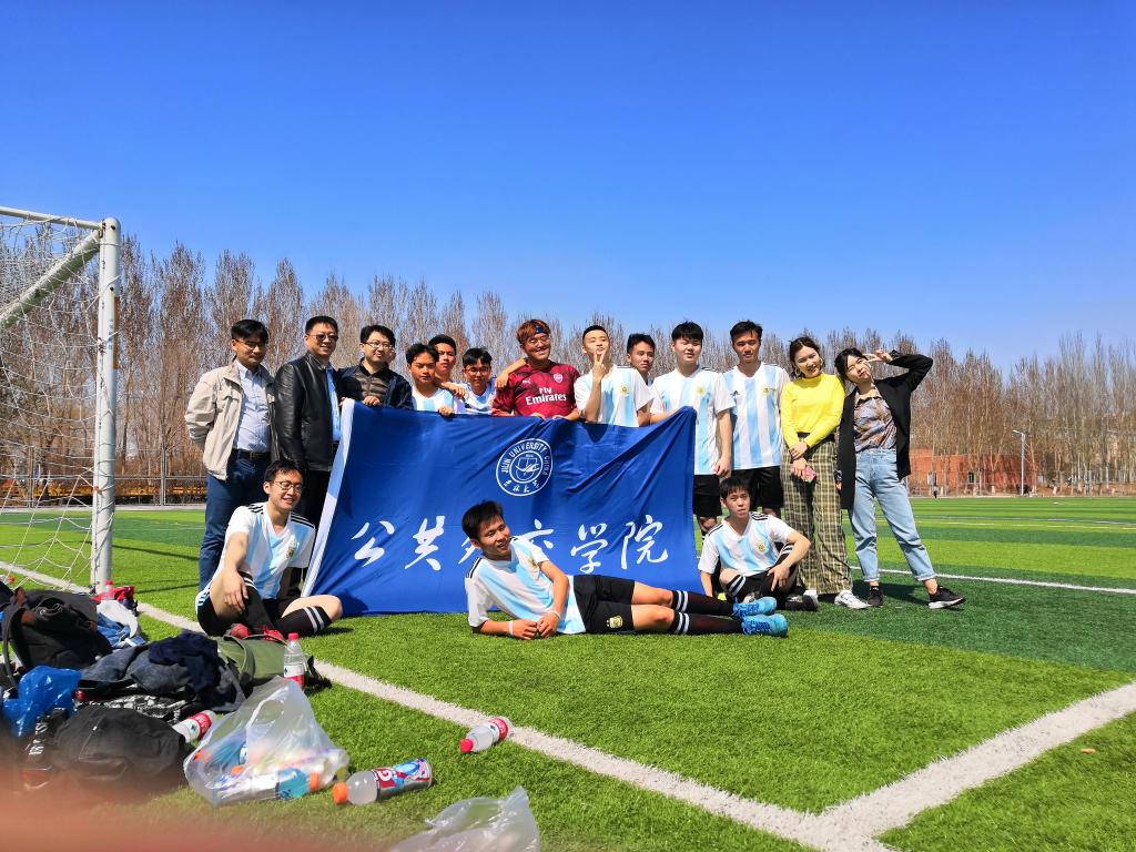 男子足球队迎战地球科学学院足球队。学院党总支书记杨民老师、副院长孙兴杰老师和部分教师到场为学生们加油助威。