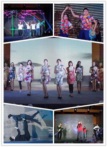 晚会在留学生短片中拉开帷幕,画面生动,充满生活气息,将吉大留学生的方方面面完整地呈现在大家眼前。俄罗斯同学表演的开场舞《夏日的草原》充满热情,奔放的舞姿瞬间点燃了现场的气氛;接下来的歌曲串烧由各国同学演唱的中外文歌曲让我们聆听了来自不同的国家天籁之音;惟妙惟肖的模仿秀《卓别林》和诙谐幽默的小品《生日快乐》让大家在笑声之余回味良久;越南舞蹈《点灯笼》,尼泊尔舞蹈《我的家乡》,泰国舞蹈《击鼓舞》以及乌克兰舞蹈《一株梅花》让大家仿佛置身异国他乡,深切地感受到了异域风情;泰国同学的古筝二胡演奏《茉莉花》和阿根廷同学的配乐诗绘画表演《竹•韵》,展示了留学生们对中国传统文化和民族音乐的理解和热爱;模特表演《花样年华》成为了晚会的一大亮点,十位身着各色旗袍的留学生同学在中国乐曲的伴奏下婀娜摇曳,举手投足都引起全场喝彩;日本街舞《精灵的修罗场》,韩国现代舞《江南绅士》以及巴基斯坦的hip-hop又把大家带回到现代,跟随潮流音乐一起摇摆;跨国组合摇滚乐《Venus》和朝鲜留学生的大合唱动感激昂,为观众带来了视听的享受;留学生的集体献唱《大中国》,台下观众也一同演唱,场内外充满欢快而热烈的气氛。