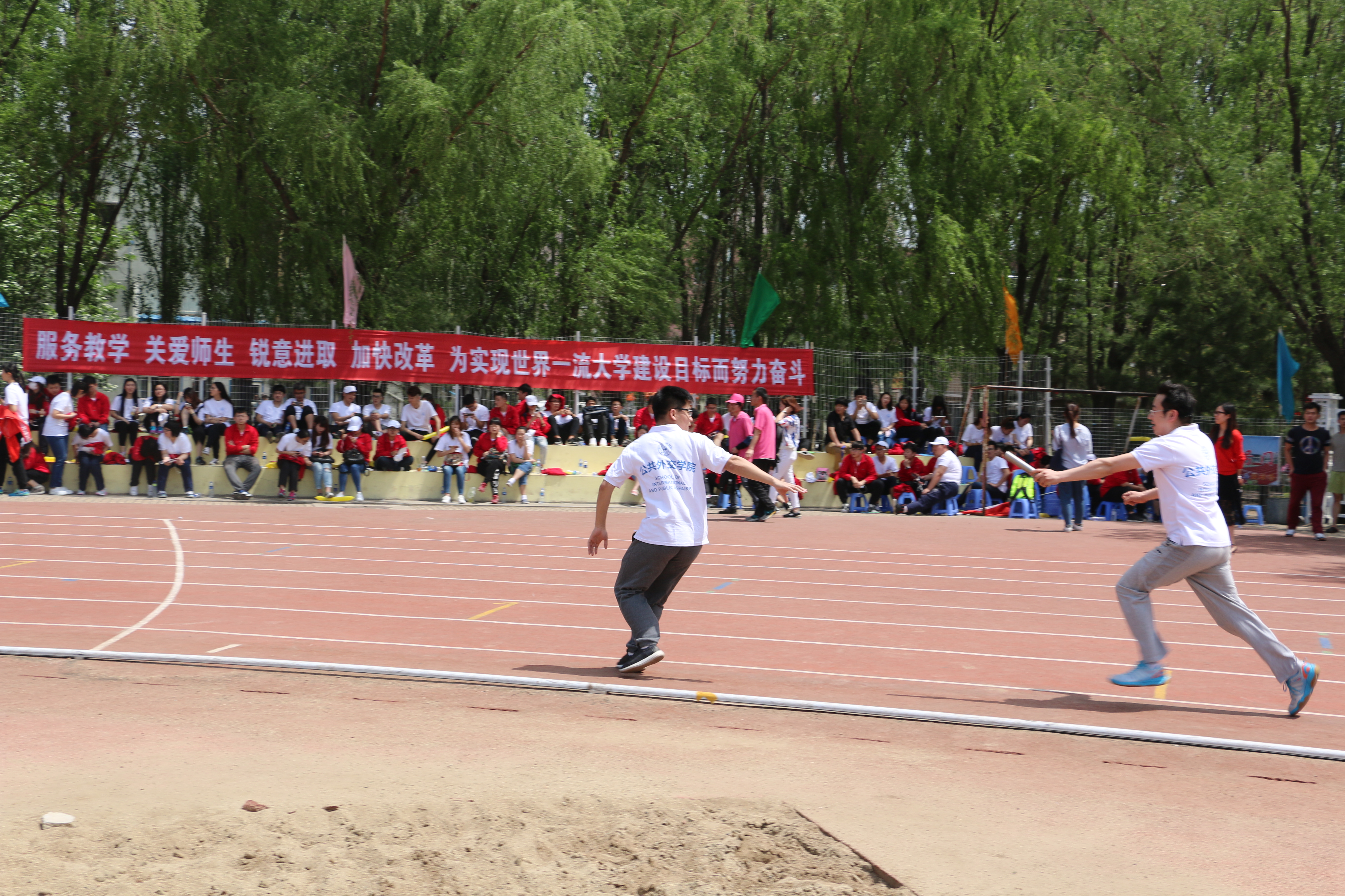 参赛运动员在时代列车的项目中力求以一个人的速度在奔跑,以十个人的力量在冲刺,最后,她们用小组第四的成绩回馈练习时的辛勤汗水。师生800米异程接力可谓是运动会的亮点之一。在比赛过程中,禁漫天堂