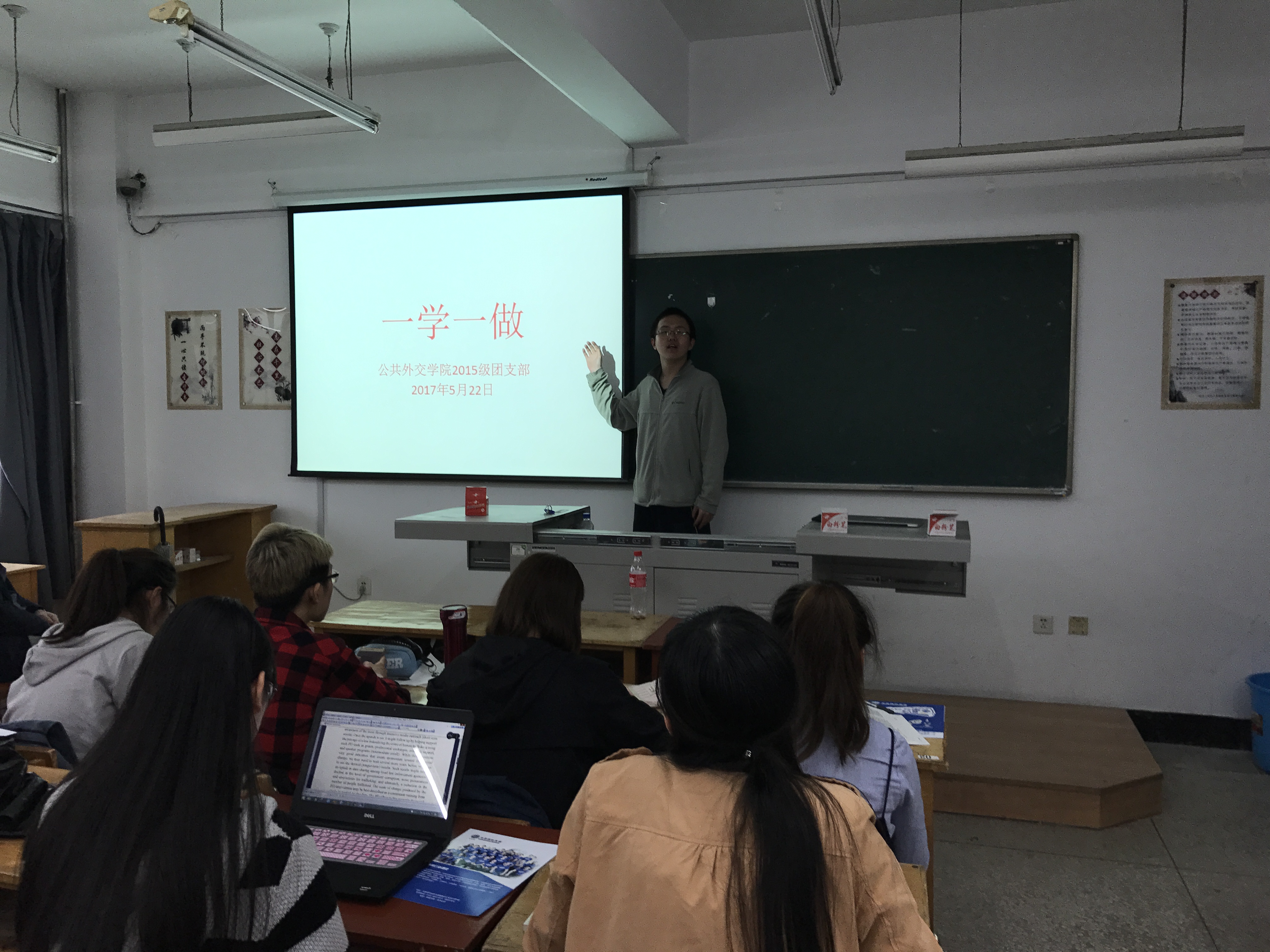 15级团支部于逸夫教学楼315教室成功召开“学习总书记讲话,做合格共青团员”主题班会。