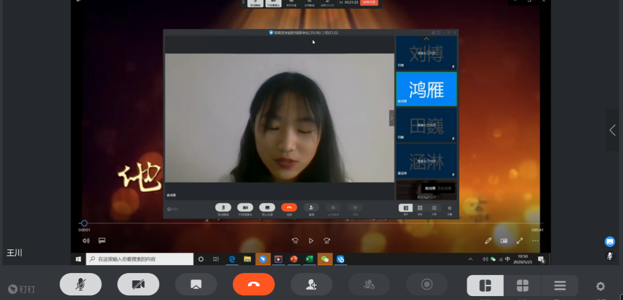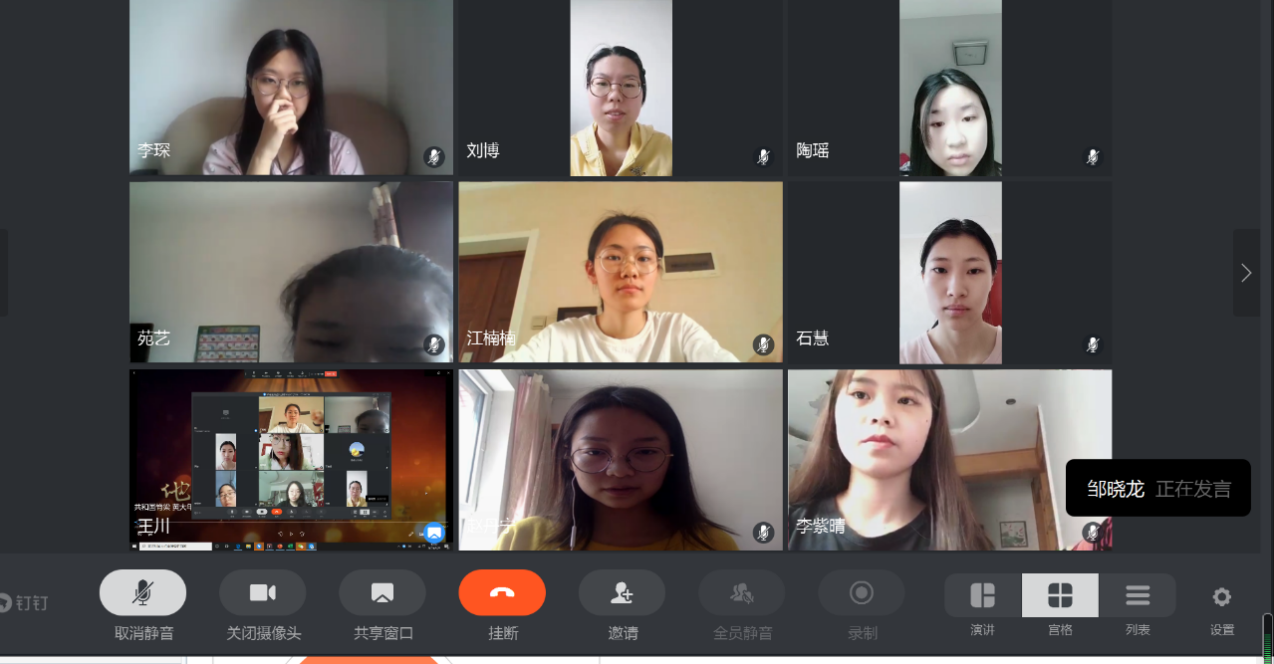2017级本科在《全球环境与气候治理》课上开展了学习黄大年精神的课上活动。活动由邹晓龙老师指导,王川主持,借由全球治理课程在钉钉平台开展,该课程全体学生参与了活动。