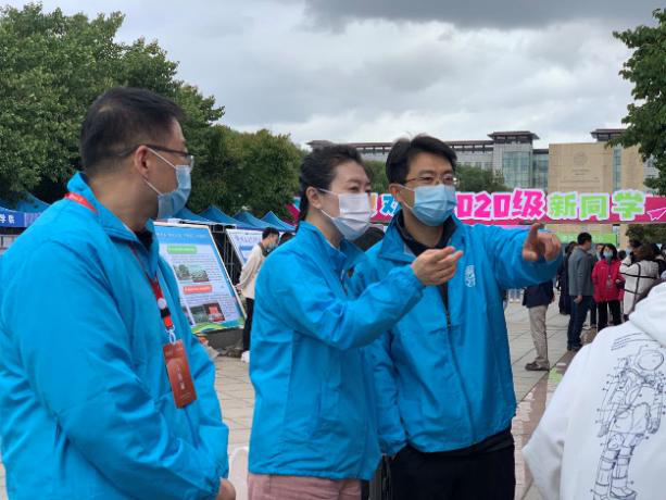 党总支书记杨民老师、2020级新生辅导员张淑艳老师、高梦鸽老师全程参与迎新工作。