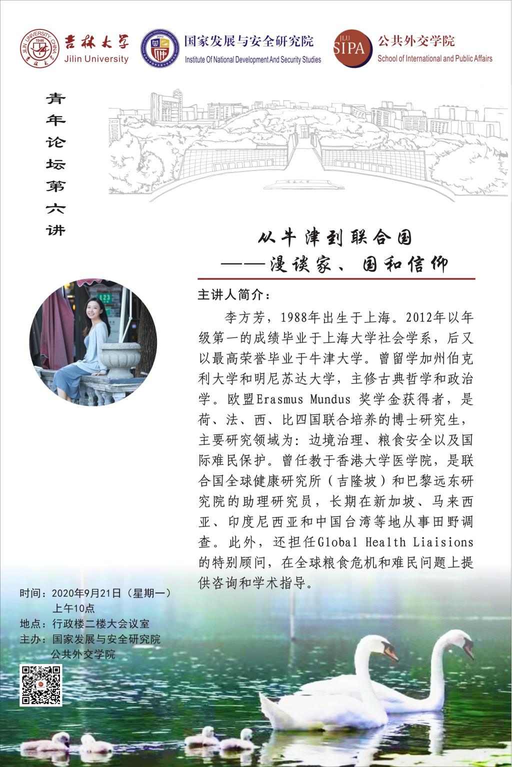 邀请李方芳博士做客青年论坛,李方芳博士结合自身的海外求学和科研经历,作了主题为《从牛津到联合国——漫谈家、国和信仰》的报告。国家发展与安全研究院、禁漫天堂